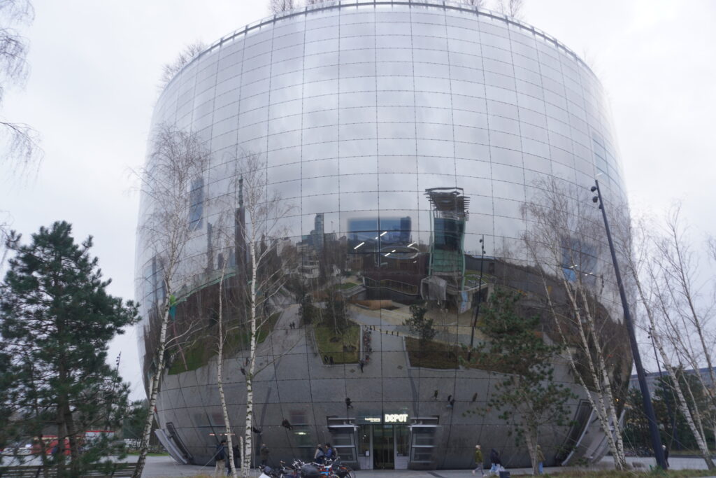 傾いた箱型の集合住宅、立体的に入り組んだマーケットホール、